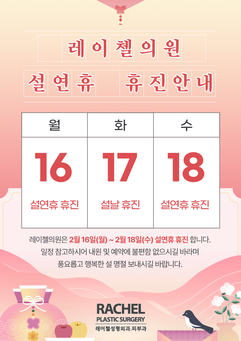 [공지] 레이첼의원 설연휴 휴진 안내