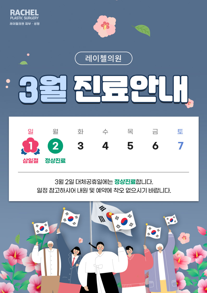[공지] 레이첼의원 3월 진료안내